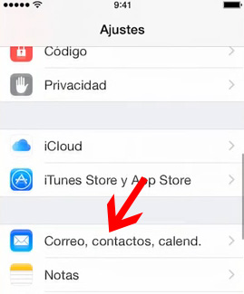 Paso 2. Tras ello seleccionamos la opción de correo electrónico, es decir, la que pone "Correo, contactos, calendarios."