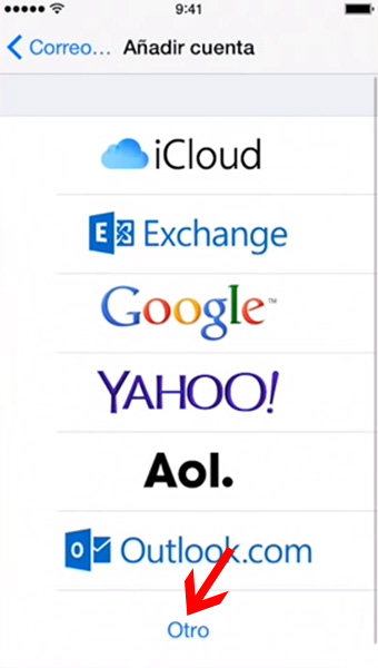 Paso 4. Despúes accedemos a la aplicación Mail de nuestro iPhone y elegimos la opción Otro (Other) para configurar una cuenta de correo electrónico con nuestro dominio.