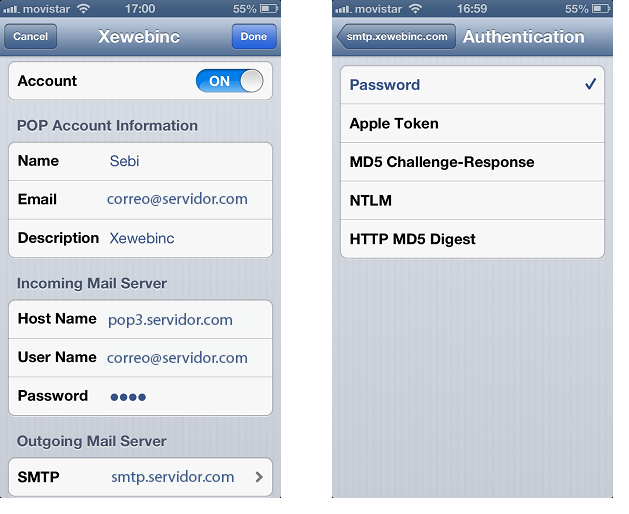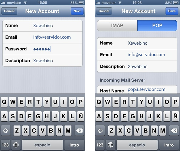Paso 5. Selecciona el servidor tipo POP y luego comienza agregando tus datos.