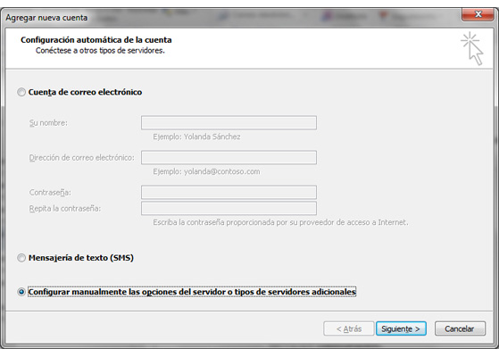 Paso 2. Seleccione la última opción la de Configurar manualmente….